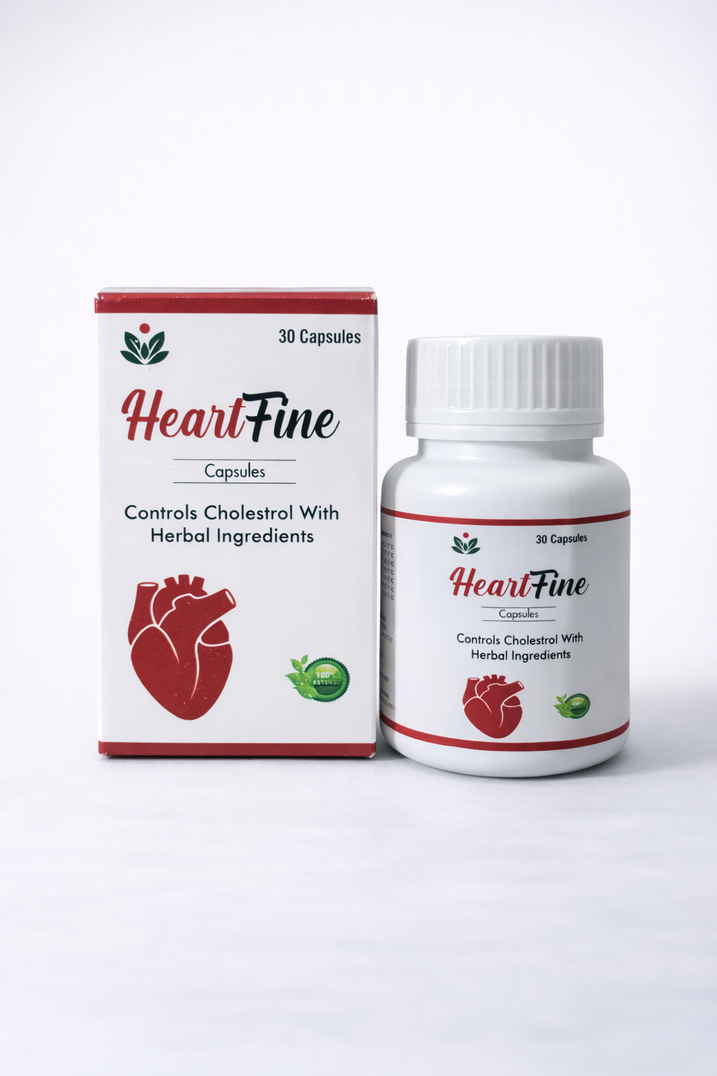 Heartfine Capsules is a herbal heart-care formula that supports heart strength, balanced blood pressure, smooth blood circulation, and reduced stress-related heart strain.